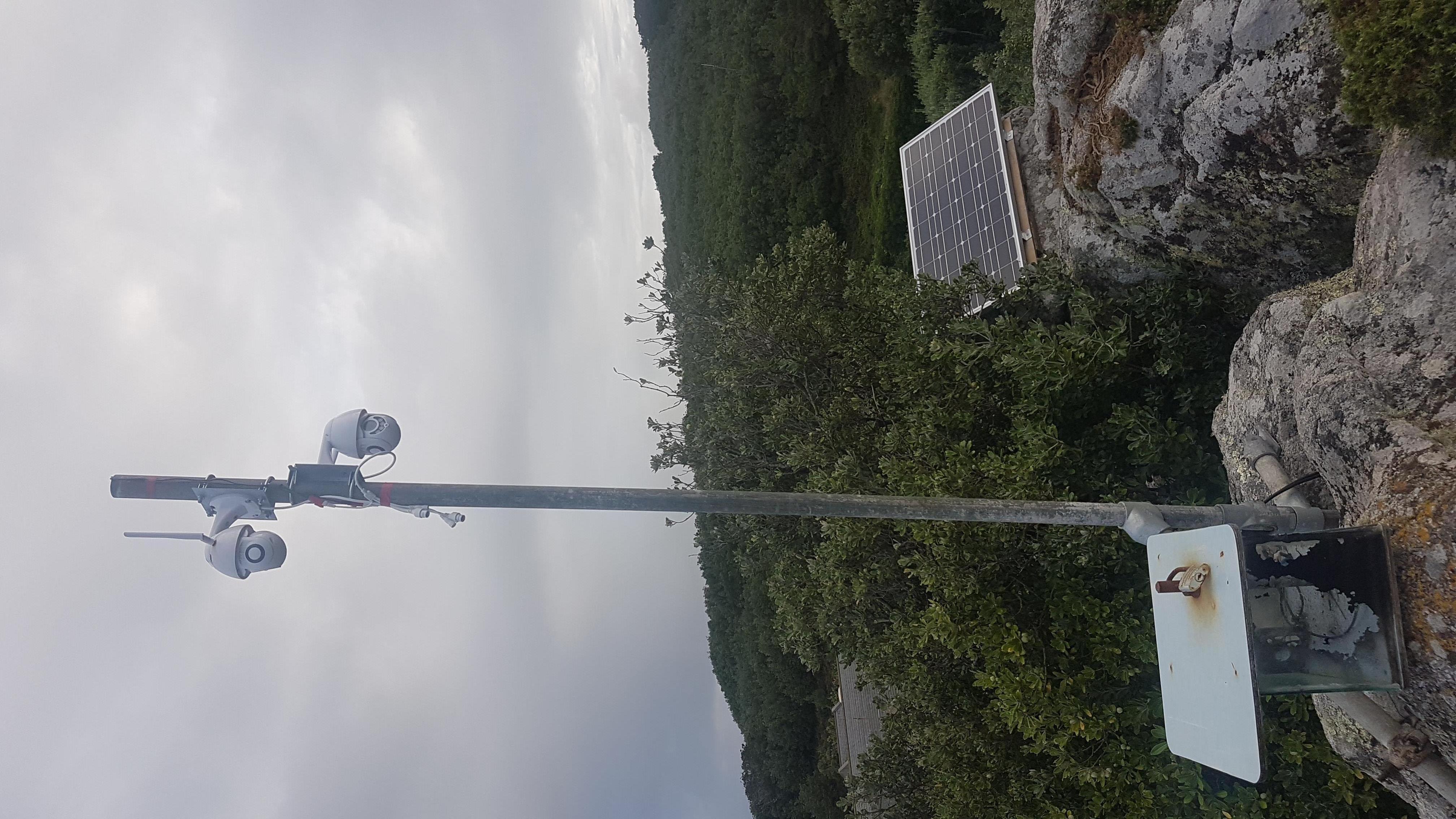There they are, the cameras are mounted on a mast bolted to the rock.The