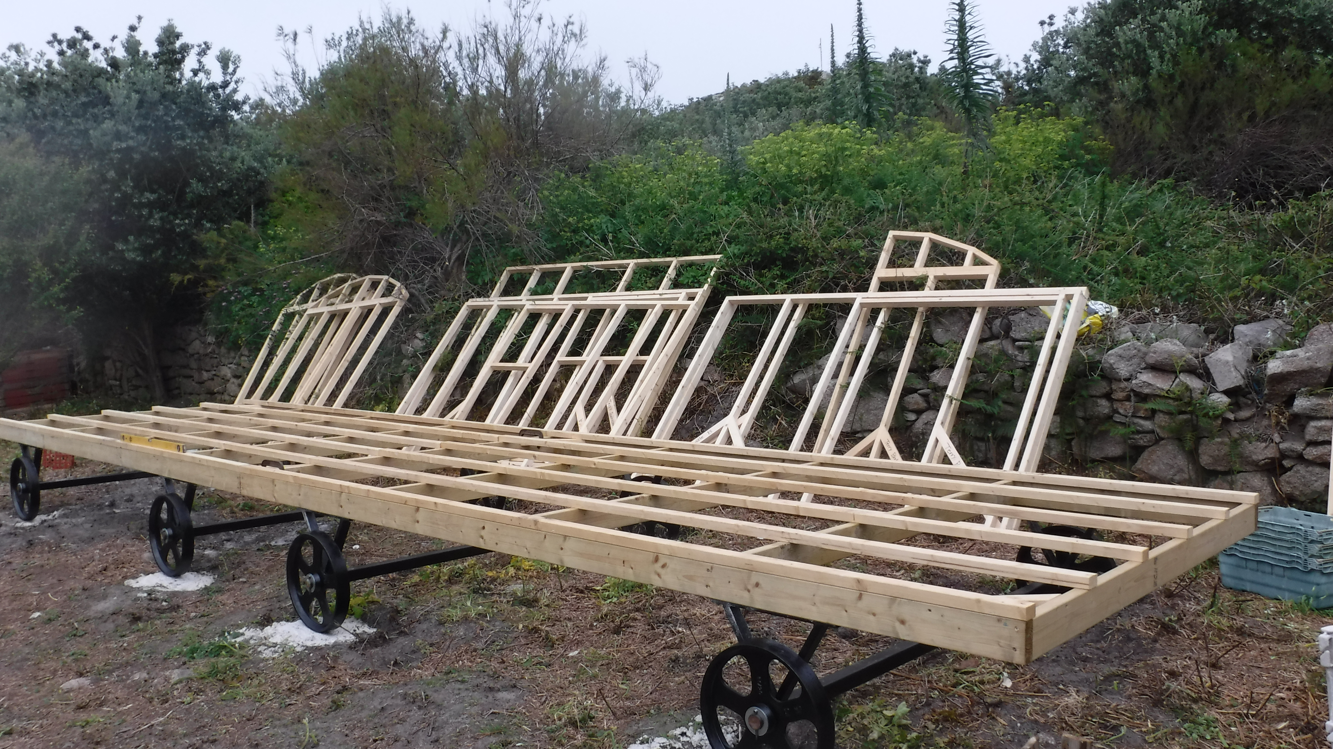 Wheels and axles painted and fixed to the base. 07/05/2022